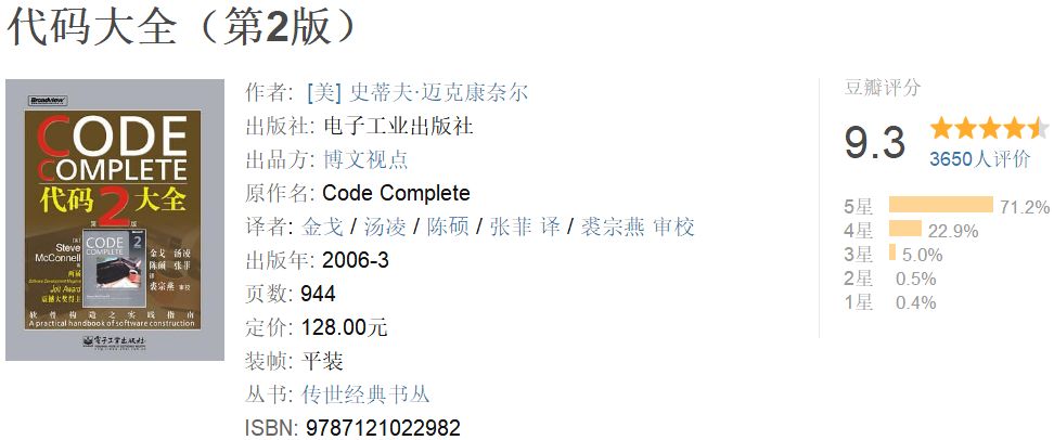 这本书里涵盖了许多如何编写良好代码的建议,无论你使用何种编程语言和架构都适用,而且涉及到很多代码编写细节,能够涉及到这么多主题的书籍,我认为这本书是所有软件开发人员必读的书籍,虽然从年代上看,这本书有些过时了,但是还是十分有价值的