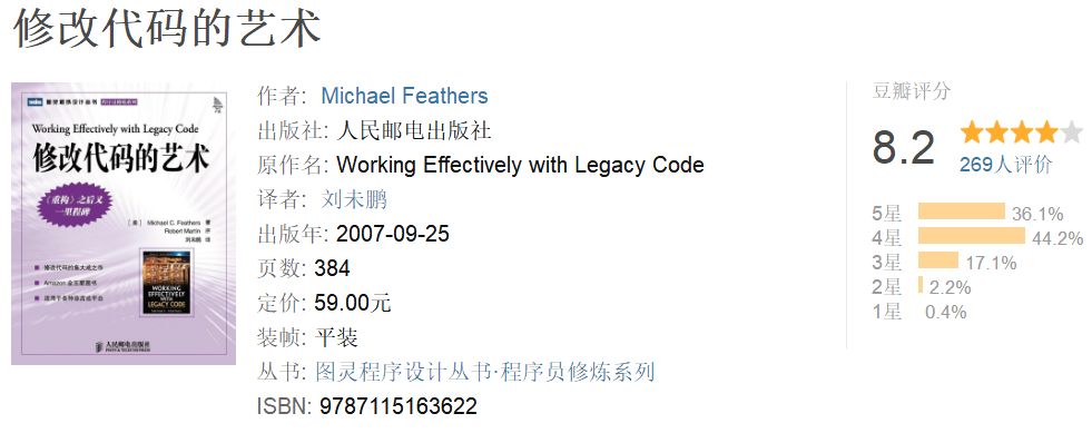 除非你真的很幸运,不然你的职业生涯中一定会遇到遗留代码的问题,我之所以选择这本书,是因为他是处理遗留代码的基础编程书籍,如果你使用大型代码库已经五年之久了,那么这本书可能是你新的圣经