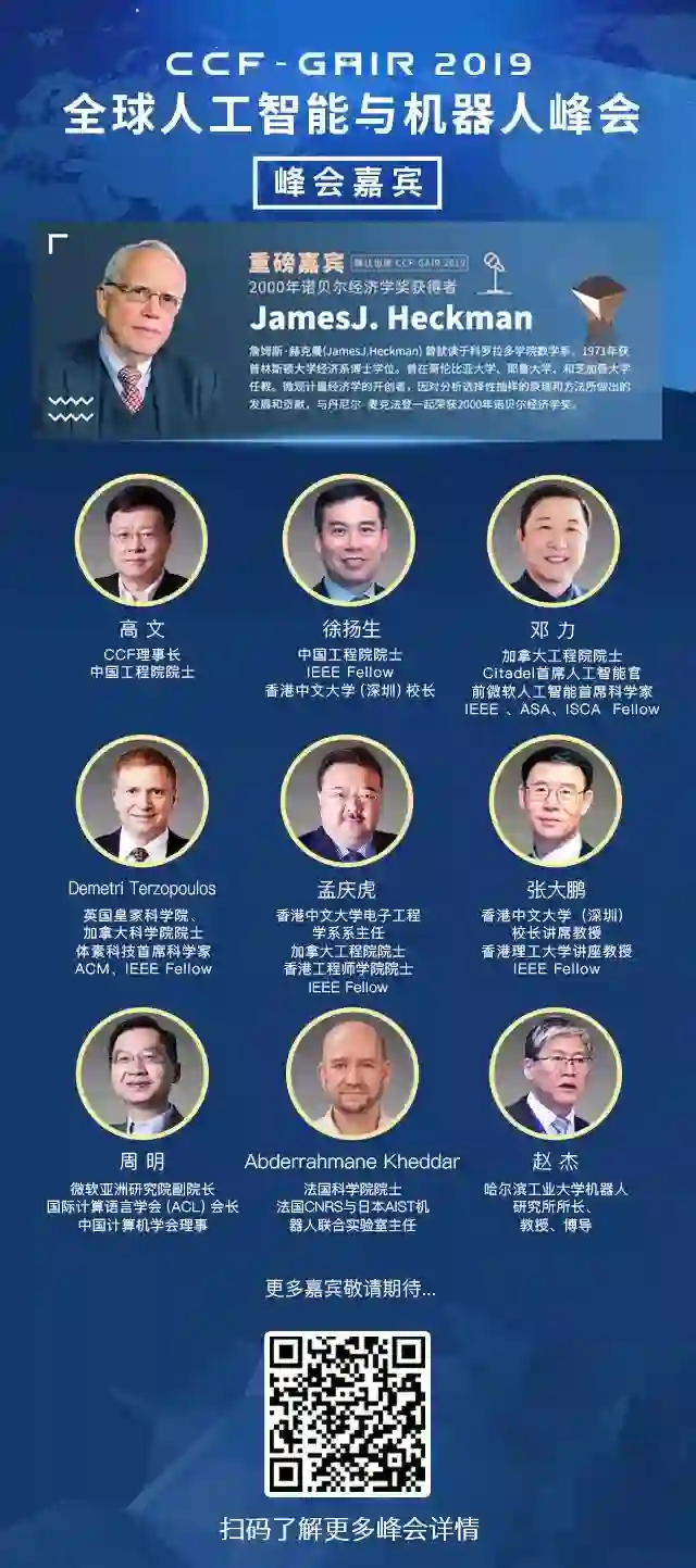 届时,诺贝尔奖得主JamesJ. Heckman、中外院士、世界顶会主席、知名Fellow,多位重磅嘉宾将亲自坐阵,一起探讨人工智能和机器人领域学、产、投等复杂的生存态势。