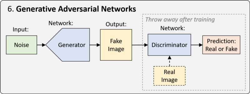GAN 是一种用于训练网络的框架,GAN 网络经过优化,可以从特定的表示中生成新的逼真样本。最简单的形式是,训练过程涉及两个网络。其中一个网络称为生成器(generator),它生成新的数据实例,试图欺骗另一个网络,即鉴别器 (discriminator),后者将图像分类为真实图像和假图像。