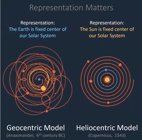 对于前者,我最喜欢的例子是哥白尼于 1543 年发表的日心说,日心说认为太阳是宇宙的中心,完全推翻了之前把地球放在中心的地心说。在最好的情况下,深度学习可以让我们自动完成这一步,从 “特征工程” 过程中去掉哥白尼 (即,去掉人类专家)。