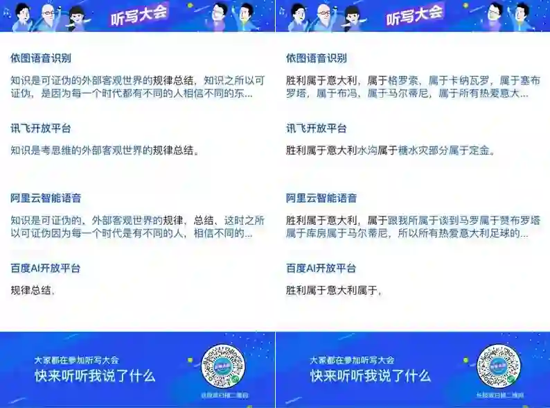 “听写大会”微信小程序:业界也属于首次公开透明地比对各类算法的水平差异