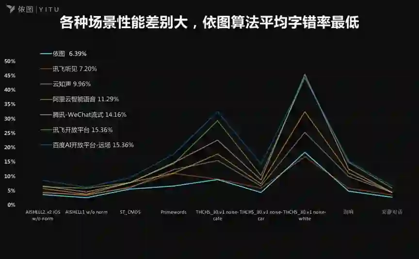依图此次推出的中文语音识别算法,与业内原有领先者相比,不仅大幅提升了识别准确率,而且在单个算法模型上,有极为出色的多场景适用性表现。