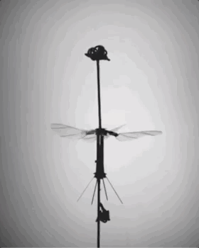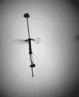 在毫米级的飞行器中,通常选择压电作为致动来源,因为它们的功率密度标度为L^-1(其中L是致动器长度),且致动器的振荡操作可以与机翼的期望运动良好匹配。制造和组装技术的进步进一步增加了在微型机器人系统应用的稳健性。不过,这种飞行器飞行必须依赖外部电源和控制系统。