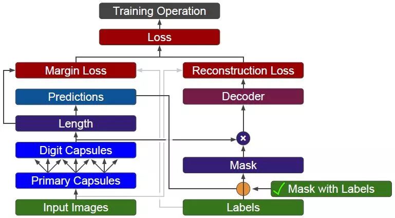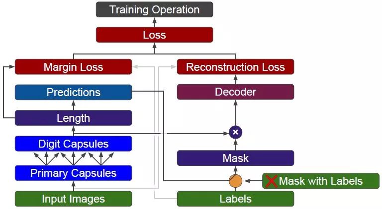 以上已经完成构建所有的网络结构,接下来训练和测试的步骤都非常标准化,就不再多言了。需要提醒的是,在训练时,mask_with_labels 设置成 True,y 被传出去用在重构损失函数里,如下图: