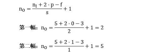 如果用 nI 代表输入图像的大小,f 代表滤波器的大小,s 代表步长,p 代表填充层数,nO 代表输入图像的大小,那么有 (公式很简单就不推导了,大家可以试试上面两个例子)