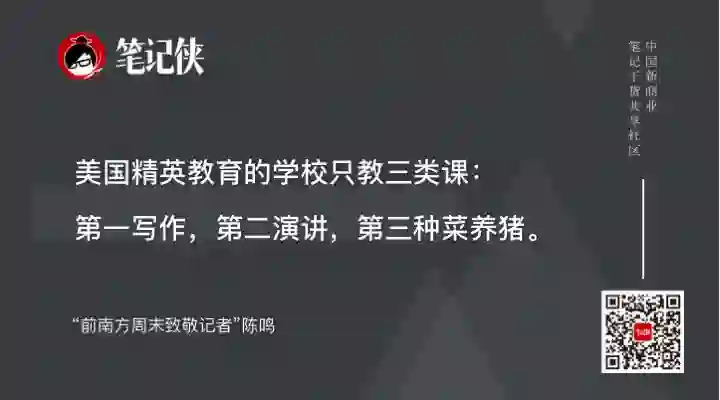 甚至在美国相对精英教育的学校里面只教三类课程:第一写作,第二演讲,第三种菜养猪。