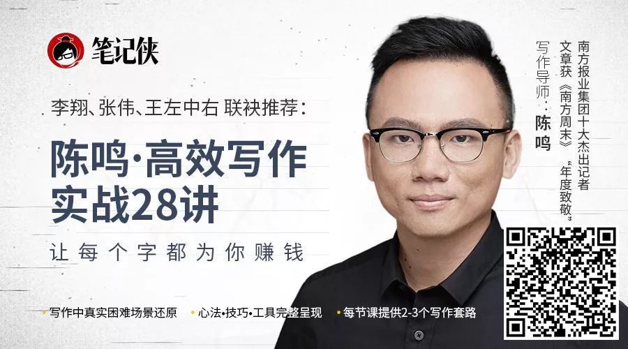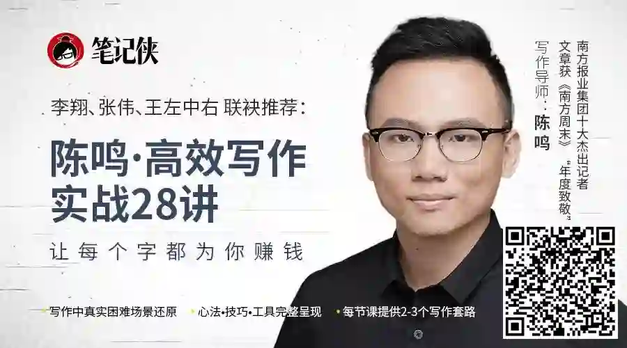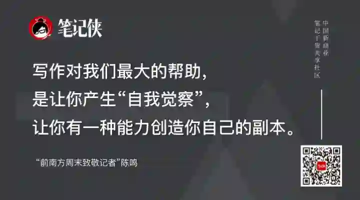 内容来源:这是一个写作无处不在的时代,写作的逻辑可以迁移到任何工作中。笔记侠特邀前南方周末年度致敬记者陈鸣,在笔记侠第三届笔记达人知识年会中,从多角度分析写作,为日常的工作、学习、生活提供解决方案。
