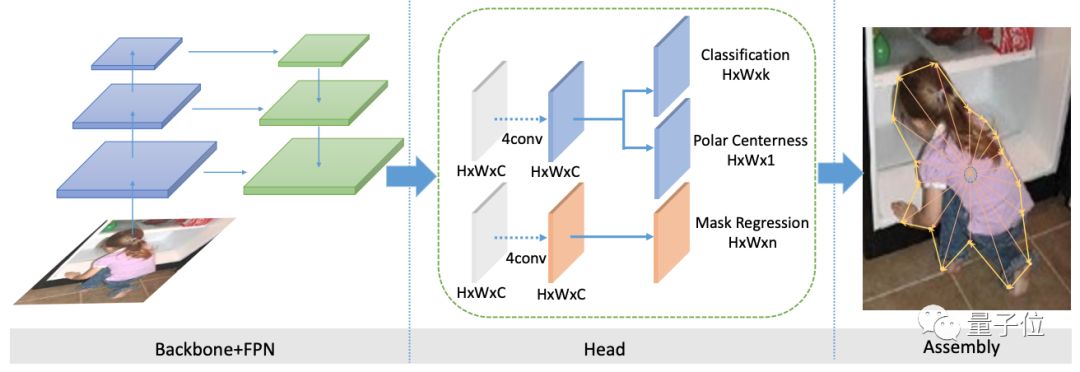贡献在于,把更复杂的实例分割问题,转化成在网络设计和计算量复杂度上和物体检测一样复杂的任务,把对实例分割的建模变得简单和高效。