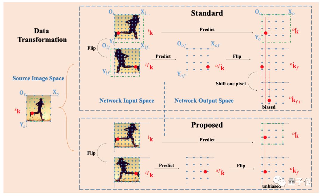 在系统地分析这个问题的时候,发现现有的所有的state-of-the-art在这个环节上都会存在两个方面的问题:一个是在测试过程中,如果使用flip ensemble时,由翻转图像得到的结果和原图得到的结果并不对齐。另外一个是使用的编码解码(encoding-decoding)方法存在较大的统计误差。