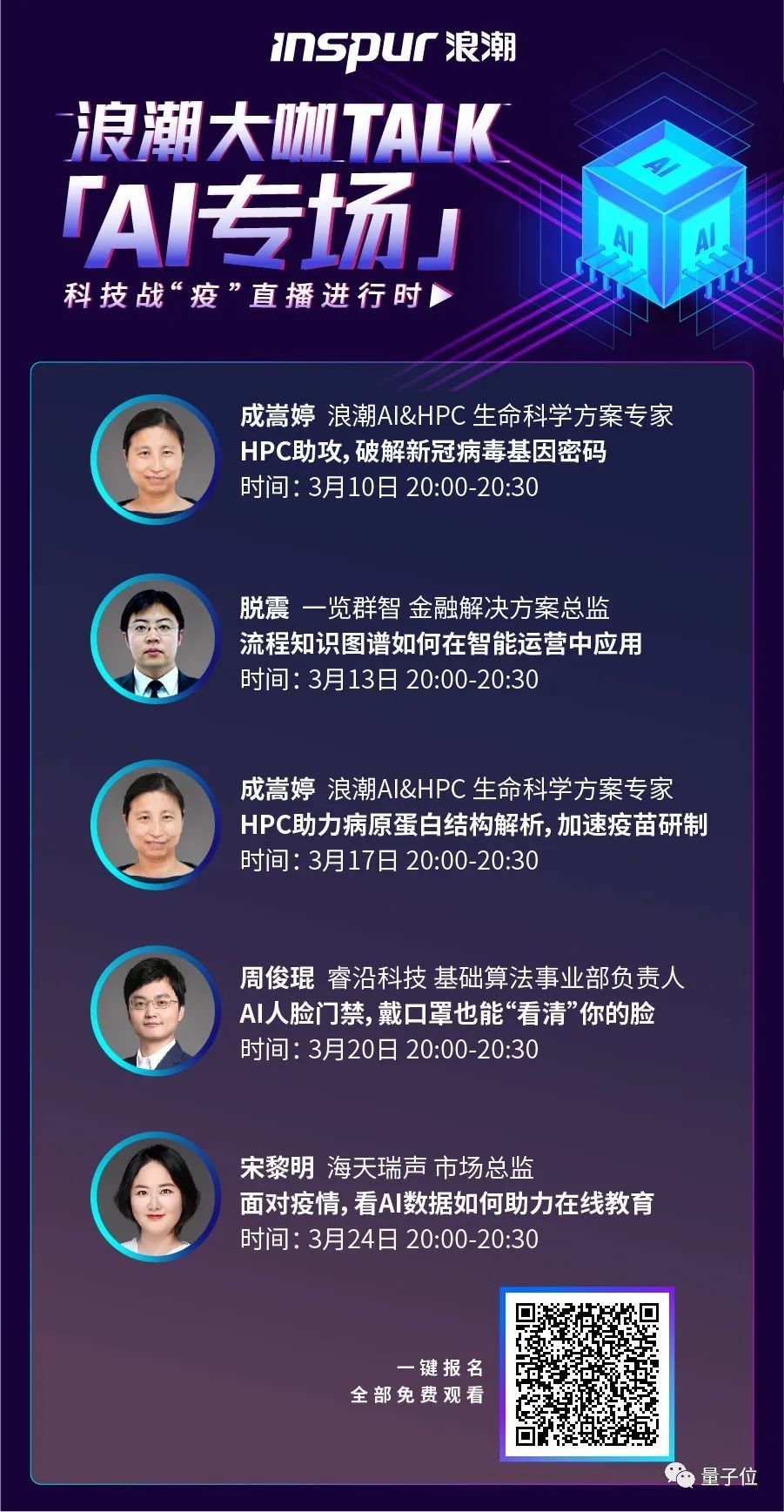 3月10-24日,浪潮携手一览群智、睿沿科技、海天瑞声大咖带来科技战“疫”系列直播,2周时间、5大主题,分享AI、HPC在战“疫”中的应用与实践,感受科技的力量。