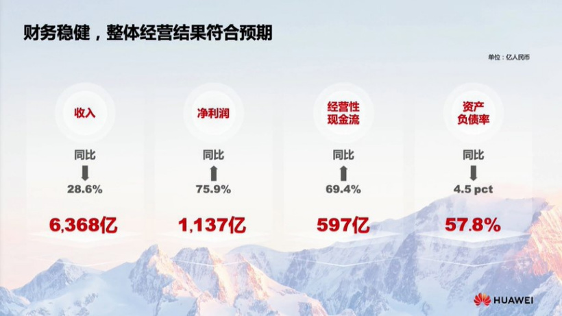 华为轮值董事长郭平表示:“公司整体经营情况符合预期,运营商业务表现稳定,企业业务稳健增长,终端业务快速发展新产业,生态建设进入快车道。”
