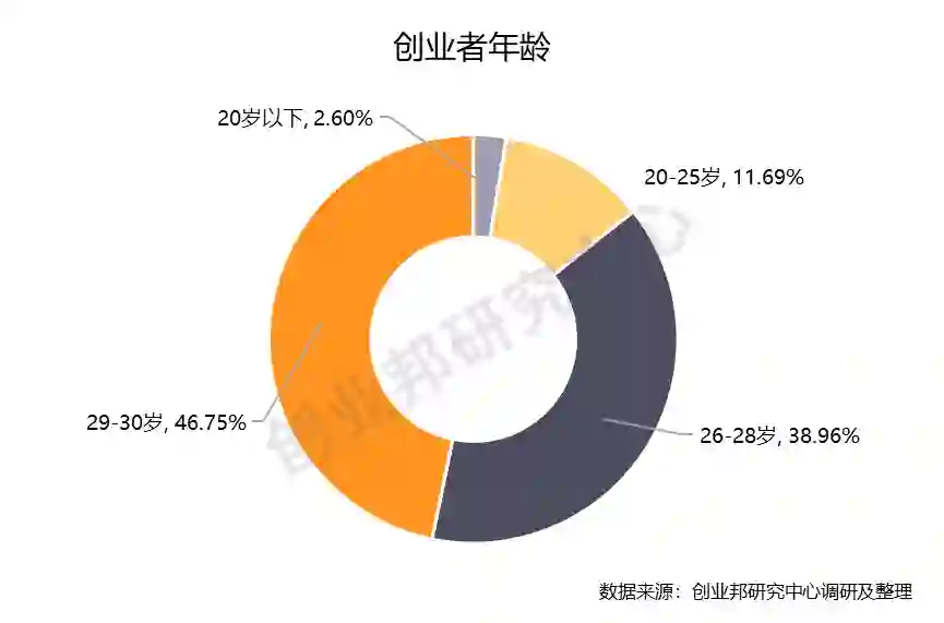 3. 创业不嫌早,创业者平均年龄为27.8岁