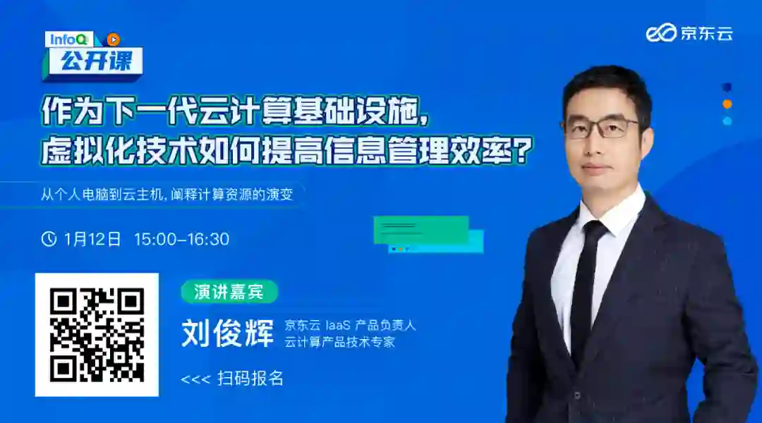 计算能力提供方式是如何演化的?计算虚拟化技术又是如何演进的?计算资源的发展方式将有怎样的转变?1月12日15:00-16:30,京东云 IaaS 产品负责人、云计算产品专家刘俊辉,将带你找到云计算技术发展和演进的内在逻辑,透视云计算未来的发展大势!扫描二维码或点击阅读原文即可报名本期公开课~