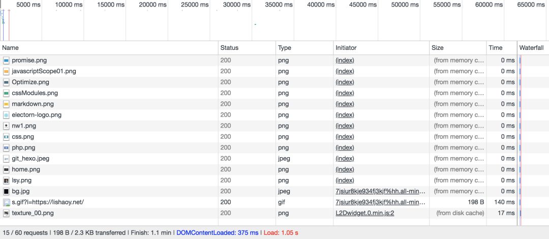 以上是 lishaoy.net 清除缓存后的首页请求速度。