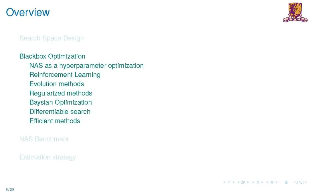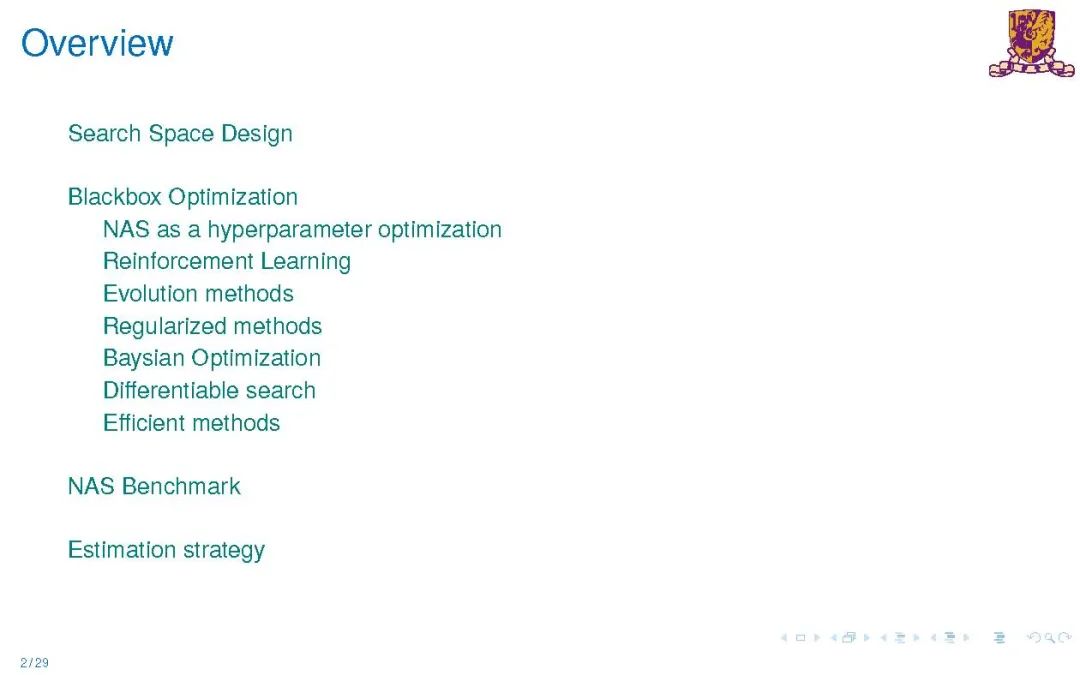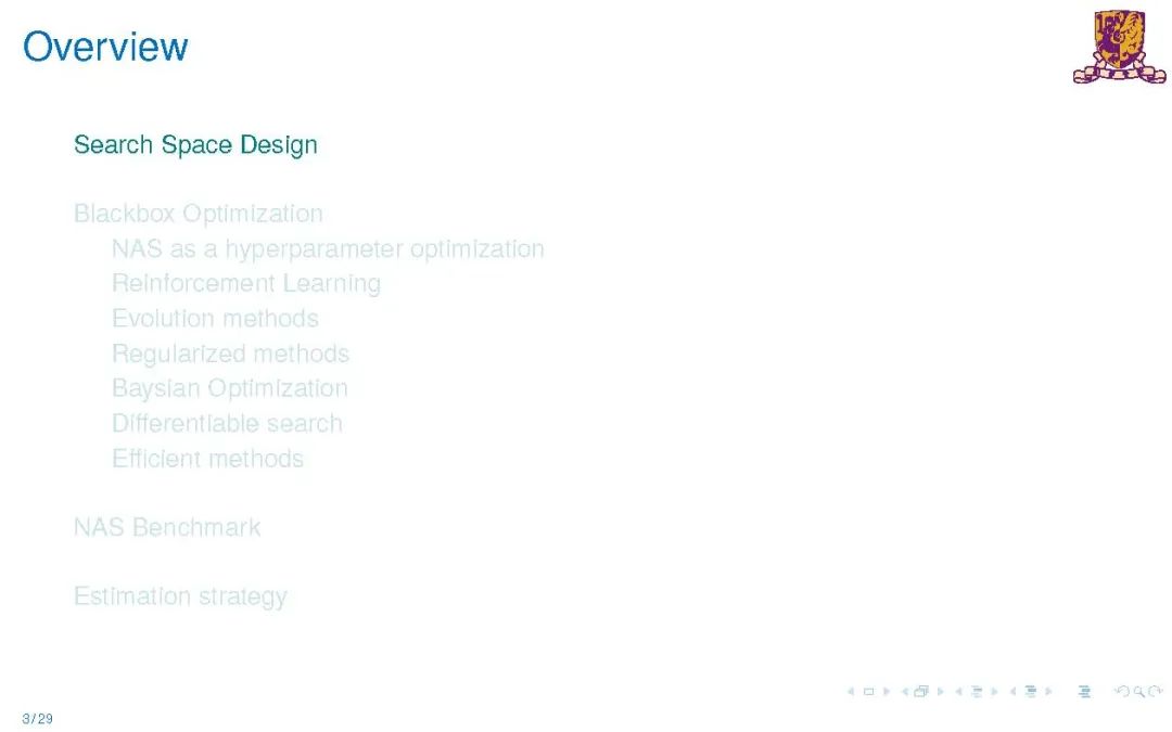 香港中文大学Bei Yu开设的深度学习课程,这一讲重点对神经架构搜索进行讲解。