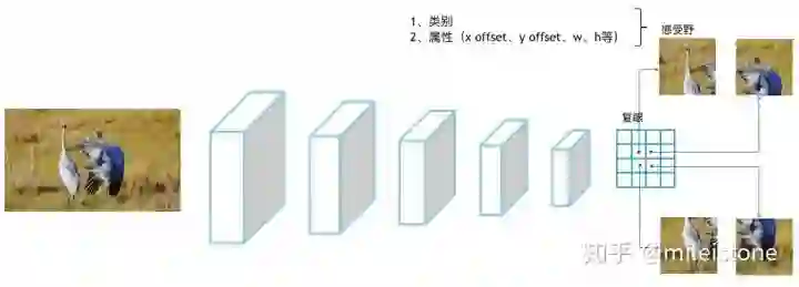 以目标检测为例子,每只眼睛会判断它看到了什么物体(类别),这个东西的x offset、y offset、w、h分别是多少(属性)。