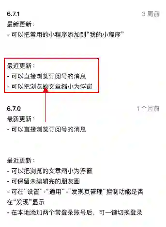 目前第一次发现有这种操作的更新说明,把上个版本更新内容放到最新表述中,略有延续性。