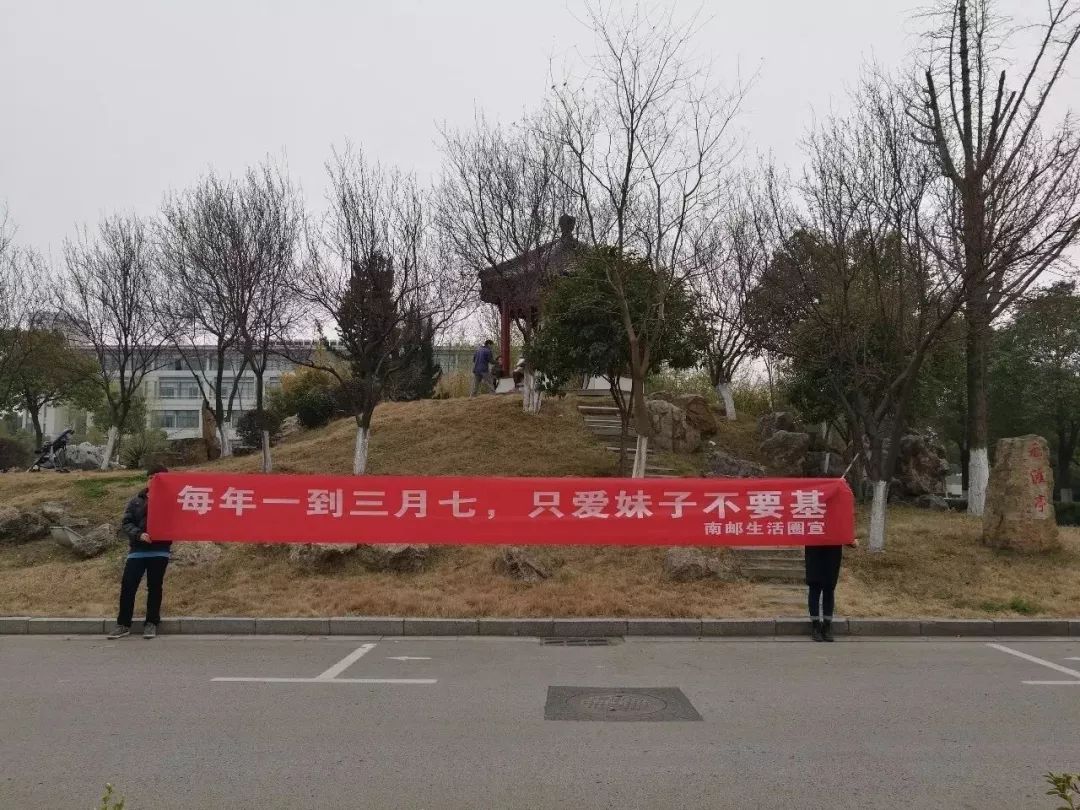 在我看来,只能算是一群非常“饥渴”的直男趁着这个机会,向女同学们纷纷示好。本来也尚不至于是个严重的问题,直至一些越来越恶劣的横幅标语出现,比如「每年一到3月7,只爱妹子不要基」,请问这是什么意思?