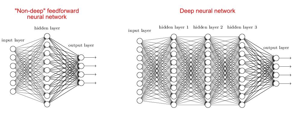那么到底多少层算深度呢?这个问题可能没有一个明确的答案。某种意义上,这个问题类似“有多少粒沙子才能算沙丘”。但是,一般而言,我们把有两层或两层以上隐藏层的网络叫做深度网络。相反,只有一个隐藏层的网络通常被认为是“浅度网络”。当然,我怀疑我们也许会经历网络层数的通货膨胀。十年之后,人们也许会认为10层隐藏层的网络都是“浅度网络”,只适合幼儿园小孩做练习用。非正式的说法,“深度”暗示应对这样的网络比较困难。