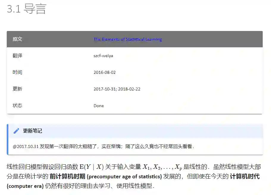 【导读】斯坦福《统计学习要素》一直是机器学习领域公认经典的教材,是一本在机器学习、统计推理和模式识别领域有影响力和被广泛研究的书。而这本书一直没有得到中文翻译。近期由szcf-weiya博士整理翻译的The Elements of Statistical Learning (ESL)的中文翻译、代码实现及其习题解答公开,非常值得学习!