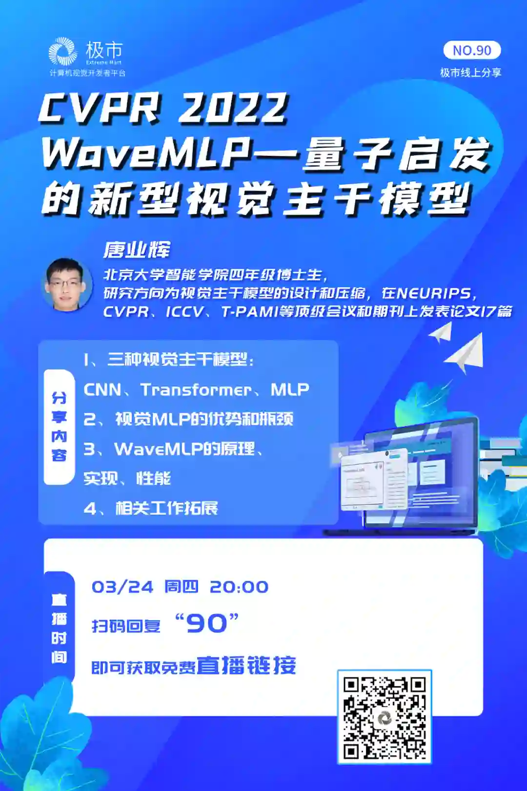 关注“极市平台”公众号,回复“90”或“唐业辉”可获取免费直播链接。