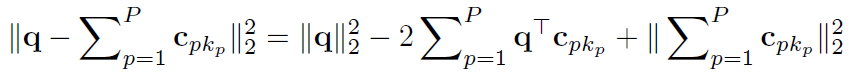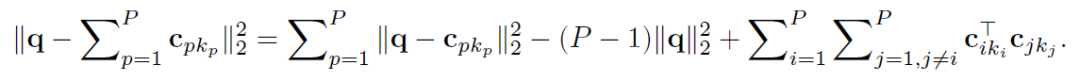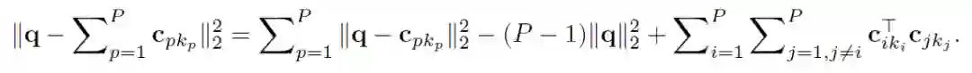 类似合成量化的方法,Artem Babenko等人提出的加和量化(Additive Quantization)从下面的距离展开形式来实现距离的快速计算: