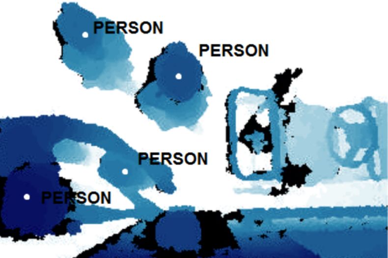 继续用自动驾驶汽车打比方:为了理解环境,我们首先需要检测环境中的人。尽管有很多种目标检测方法,但它们大多数都是为彩色 RGB 图像开发的。因此,我们选择一种可在任何类型的图像上运行的方法,该方法利用了该问题的两个层面:在给定房间图像中,人只占据很小的空间,而深度图像中的人看起来则像地板背景上醒目的「一坨」。