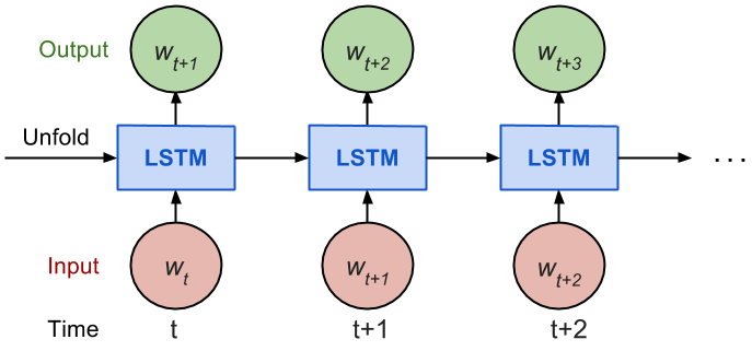 By design, the output of a recurrent neural network (RNN) depends on arbitrarily distant inputs. Unfortunately, this makes backpropagation computation difficult. In order to make the learning process tractable, it is common practice to create an “unrolled” version of the network, which contains a fixed number (num_steps) of LSTM inputs and outputs. The model is then trained on this finite approximation of the RNN. This can be implemented by feeding inputs of length num_steps at a time and performing a backward pass after each such input block.