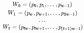 股票价格是长度为NN,定义为p0,p1,...,pN-1,其中pi是第i天的收盘价,0≤i<N。 我们有一个大小固定的移动窗口w(后面我们将其称为input_size),每次我们将窗口向右移动w个单位,以使所有移动窗口中的数据之间没有重叠。