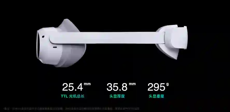 PICO 4的TTL(光机总长)只有25.4毫米,头显最薄的地方只有35.8毫米,非常轻盈小巧。