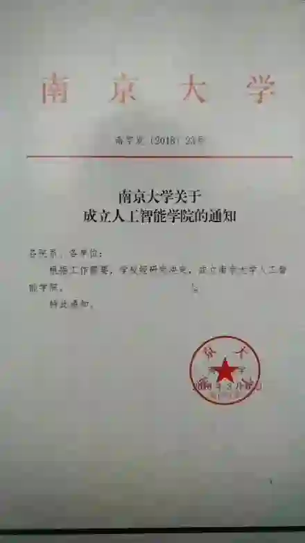 2018年3月6日,南京大学官网正式发布新闻,经研究决定,南京大学正式成立人工智能学院。