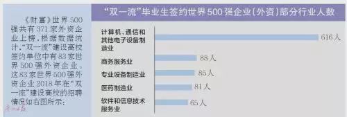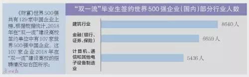《财富》世界500强排行榜一直是衡量全球大型公司的知名榜单,2018届“双一流”建设高校毕业生进入世界500强企业的共有48120人。