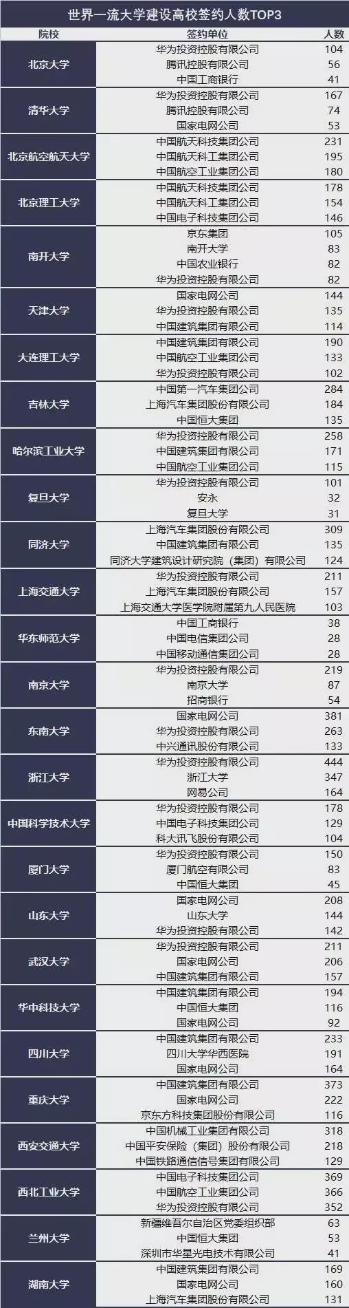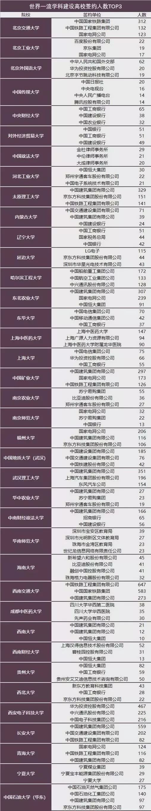 通过以下数据能够看出华为等一些强势企业对哪些高校有所“偏爱”,想去银行最好选择那些院校,想进央企国企哪些大学比较“吃香”等等....
