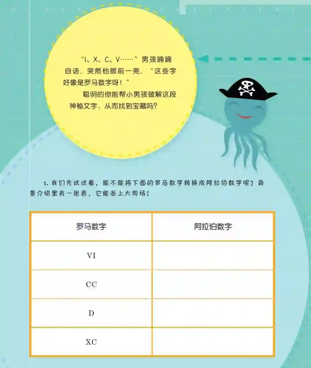 比如说罗马数字转化成阿拉伯数字,这里面就有诀窍,就像VI和IV这两个罗马数字虽然用了相同的字母,但是含义完全不一样,有它自己的计算规则,涉及“5+1”和“5-1”这两种计算,这是将阅读理解、数字认知和加减法都融合在了一起。