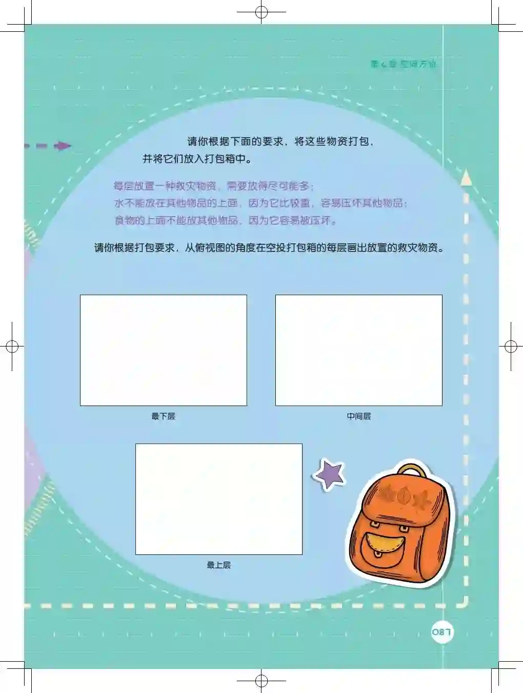 接着就是准备救灾物资,因为空间有限,孩子需要在打包箱里塞入尽可能多的物资,这就涉及一个空间位置的规划问题。