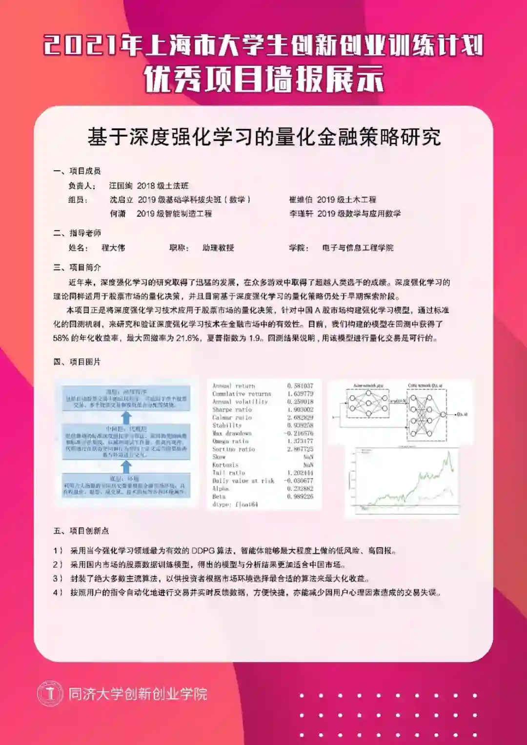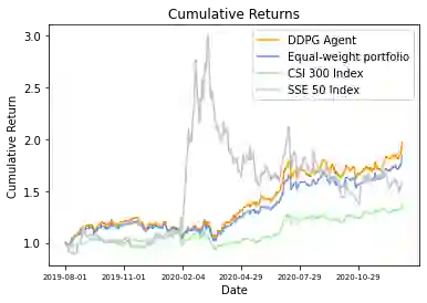同济大学的本科生团队正致力于基于深度强化学习的量化金融策略研究,并已经使用 DDPG 算法在我国 A 股的历史数据上取得了不错的效果。实验代码已在 FinRL-Meta 开源。