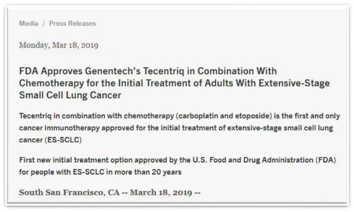 FDA批准Atezolizumab一线治疗广泛期小细胞肺癌