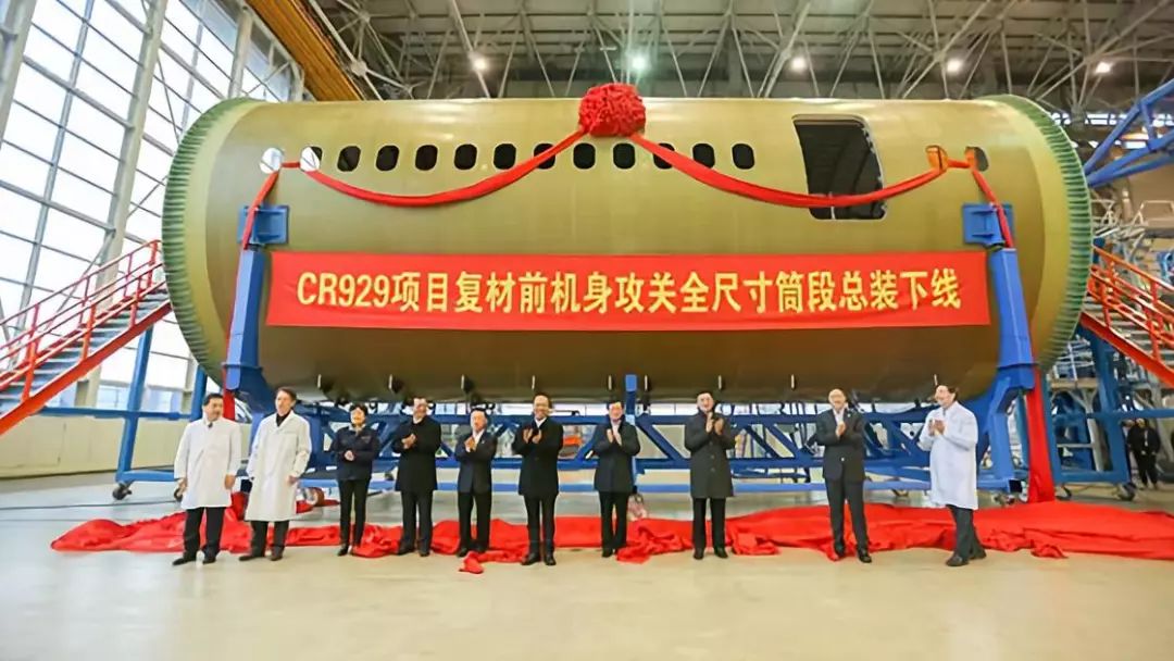 虽然中国民用大型客机 C919 还没有交付使用,但它的后续型号 CR929 又有了新进展。根据中国商飞官方公告,12 月 26 日,CR929 项目复合材料前机身攻关全尺寸筒段(15 米×6 米)顺利实现总装下线,这是继 11 月 6 日 CR929 远程宽体客机 1:1 展示样机首次亮相珠海航展之后的又一阶段性成果,标志着 CR929 项目复材结构研制向前迈出了重要一步。