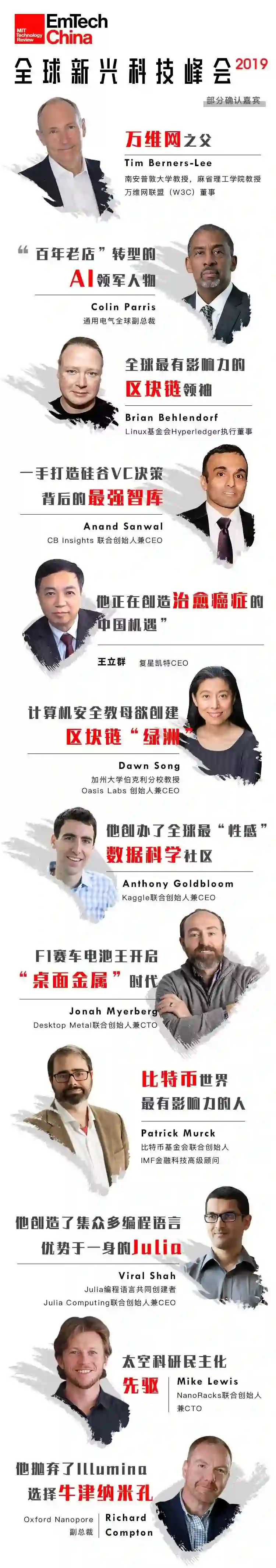 在科技发展越来越超乎普通人想象的年代,我们迫切地需要一场巅峰对话来总结过去,指引未来。2019 年 1 月 19 - 21 日,EmTech China 全球新兴科技峰会,超过 30 位全球科技“掌舵人”将亲临北京,为你展开前沿技术的壮丽蓝图,为你解读技术背后的未来价值!
