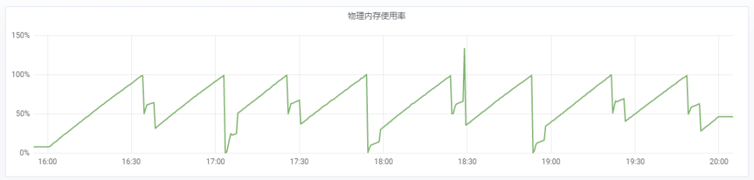最近我们团队使用的框架从 TF1 升级到了 TF 2。升级之后,线上的 Tensorflow Serving 发生了爆内存的现象。具体现象如下图所示:16G 的内存不到半个小时全部耗尽,内存耗尽之后服务挂掉,然后服务管理平台重新拉起服务;不到半个小时,16G 内存又耗尽,服务挂掉又拉起;这个过程反复进行。TensorFlow Serving 进程因 Out-of-Memory 多次重启。