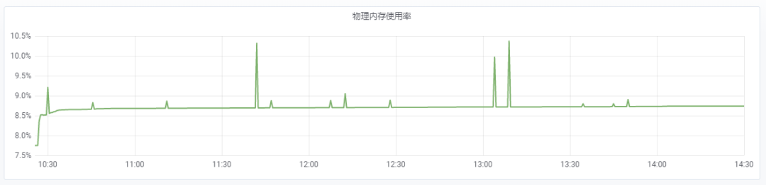 可以看到,除了压测刚开始的一段时间,其余时间 TensorFlow Serving 内存占用保持平稳。