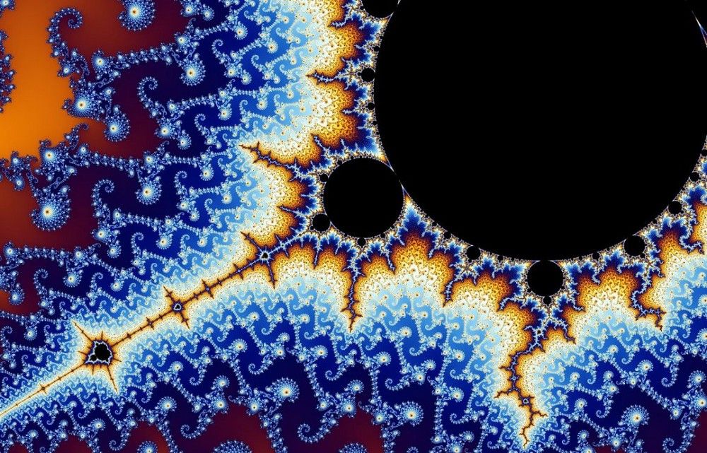 一个简单的混沌系统的例子是分形(如图所示)。分形是在不同尺度上不断重复的一种模式。由于分形的缩放方式,分形不同于其他类型的几何图形。