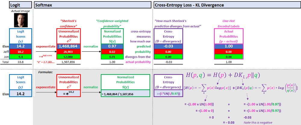 softmax分类器很直观。夏洛克认为有97%(置信度加权)的几率终结者查看的图像是Elon Musk.