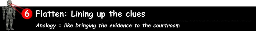 第一步至第五步,我们专注于收集证据,现在是时候让夏洛克查看所有线索,侦破案件了: