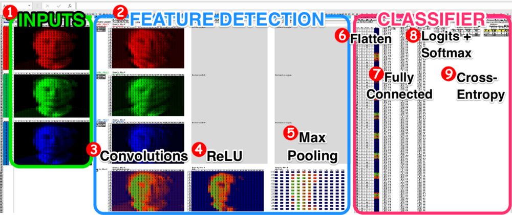我将循序渐进地通过电子表格(你可以通过下面的链接下载)向你展示卷积神经网络(CNN)是如何应用于计算机视觉任务的。其中包括一些数学,不过电子表格中包含了所有的公式。
