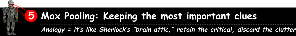 现在夏洛克有一些特征映射(“线索”)要查看,如何确定哪些信息是关键的,哪些信息是无关的细节?最大池化。