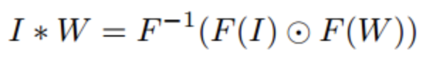卷积可以在很多方面得到加速,傅里叶变换是一个非常实用的选择尤其是对于加速那些大的滤波器。频域加速卷积的理论基础是信号处理中的卷积定理,即在合适的条件下,两个信号卷积的傅里叶变换是其傅里叶空间的点乘: