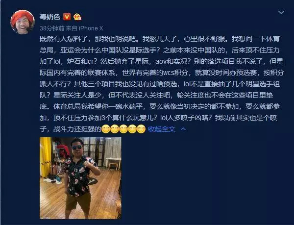 而《星际争霸2》中国的热度及整体实力虽然不及韩国,但也不至于无人可上,著名电竞人黄旭东也曾在微博发文吐槽。