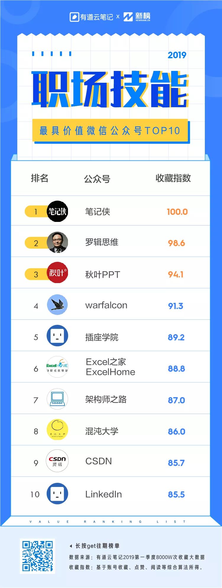 在职场,学习永不落后,「笔记侠」首次登上榜首,成为TOP1,程序员们聚类内容上榜速度明显,代表就是「架构师之路」、「CSDN」等,新上榜的「混沌大学」则偏重职场学习,创新思维汇聚。